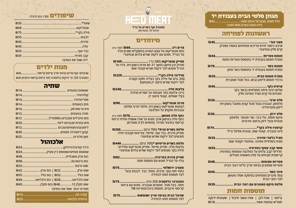 במסעדת רד מיט אנו מציעים חוויית בשרים ייחודית בסביבה פסטורלית עם נוף מרהיב. כבר 17 שנה אנו מתמחים בהכנת מנות בשר איכותיות, כששילוב הטעמים בין מסעדת שף גורמה לבין מסורת בשרים אותנטית יוצרת חוויה קולינרית בלתי נשכחת.